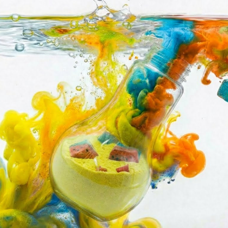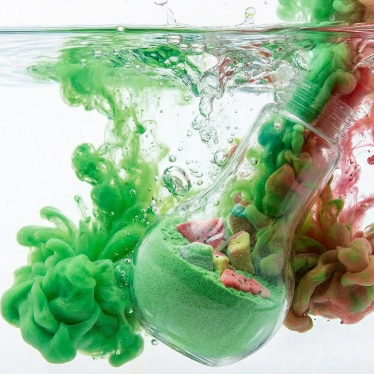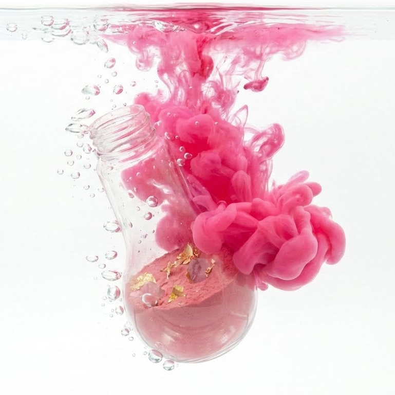 Pigments fruités naturels et extraits végétaux doux. Aucun sulfate, aucun parabène, aucun colorant agressif. Juste ce qu'il faut pour colorer l'eau en toute sécurité.